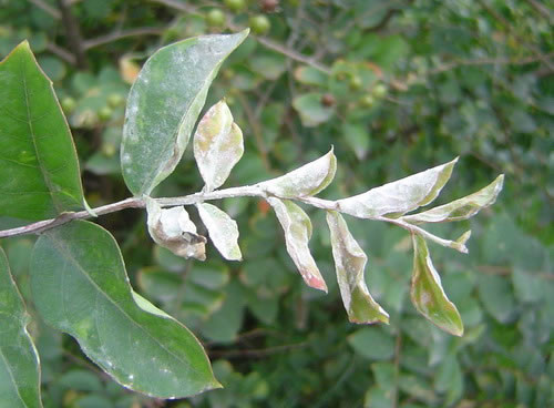 危害园林花卉植物范围广,主要有桅子花、桂花、山茶、米兰、茉莉、枸骨、蜀松、紫薇、爪叶菊、金边瑞香、白兰、棕榈、黄杨、海桐、冬青、樱桃、蔷薇等,危害严重时,导致植株叶片漆黑,花木提早落叶。
