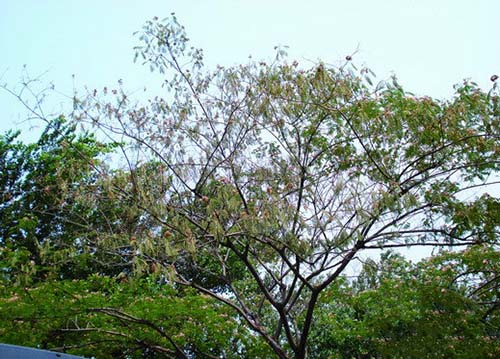6~8月为发病高峰期,是合欢树上的一种毁灭性病害。该病在幼树、大树均可发生,1年生苗发病少,3—5年生树发病多而严重,生长势弱的植株发病多,发病速度快,易枯死。幼苗染病叶片变黄,根茎基部变软,易猝倒,最后全株枯死。成株染病,先从1~2根枝条出现症状,病枝上的叶片萎蔫下垂,叶色呈淡绿色或淡黄色,后期干枯脱落,随后部分枝条开始干枯,逐步扩展到整株,至死亡。