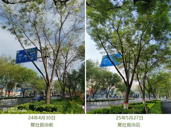 4. 土壤生态修复:补充益生菌和有机质,改善土壤微生物群落结构,促进根系的生长和发育。根系发达了,国槐才能从土壤中吸收足够的水分和养分,实现长势复壮,真正做到根深叶茂。